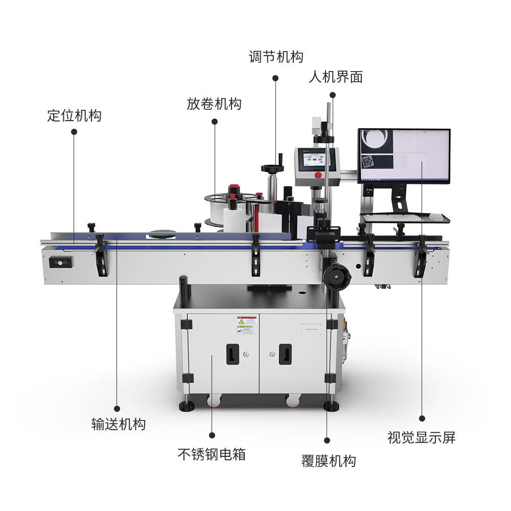 本機屬于圓瓶貼標機,專用于圓瓶類貼標簽,可貼單標和雙標,正背雙標間距可靈活調整;具備錐形瓶貼標功能;選配圓周定位檢測裝置,可實現(xiàn)在圓周面指定位置貼標。